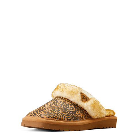 Crafted from beautifully tooled leather and with a super-soft lining, this cozy square-toe slipper pairs sophisticated Western style with everyday comfort. The durable rubber sole is perfect for quick trips outside