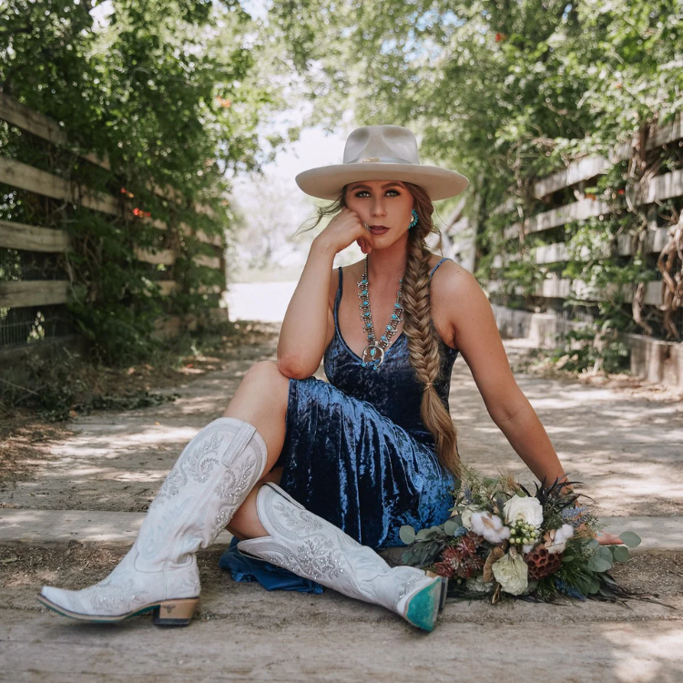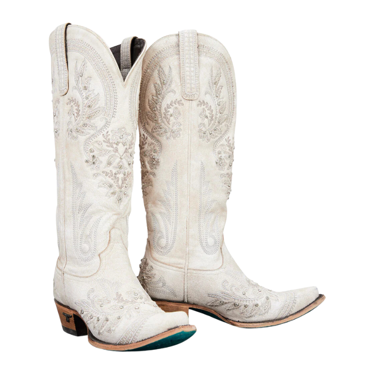 Featuring rim set crystal accents and tonal embroidery the Santorini is an upscale, elegant boot and makes an excellent wedding boot.