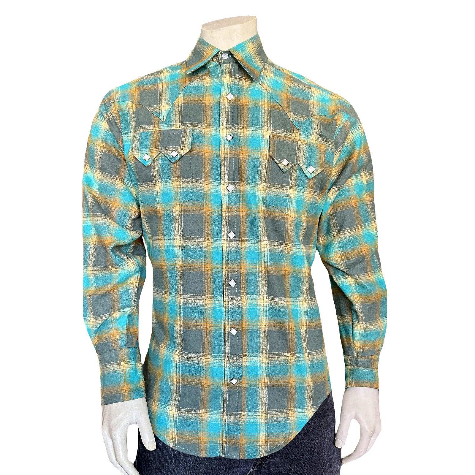 Rockmount 647-GRN/TUR Men's Plush Flannel Green & Turquoise Plaid Western Shirt